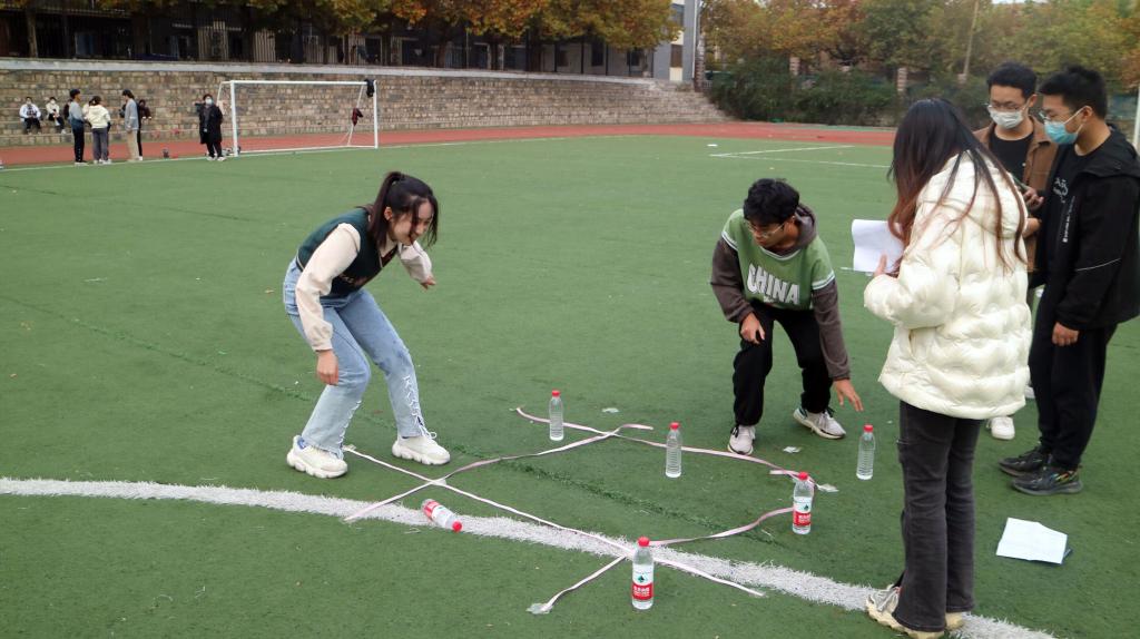 此次博弈运动会共分为“折纸”“水瓶井字棋”“蛟龙出海”及“争分夺秒”四个项目。比赛当天,队员们个个精神抖擞,激情满怀,全身心投入到比赛之中。“折纸”中每队派出三名选手在报纸上通过答题一决胜负,“水瓶井字棋”中两队选手公平竞技,在棋盘上一决高下,他们的精彩表现引得在旁的队友们呐喊欢呼,掌声连连。而“蛟龙出海”和“争分夺秒”这几个项目则非常考验队员们之间的配合。“蛟龙出海”中四名队员齐心协力横穿操场,“争分夺秒”则需选手们在桌面上按顺序将扑克牌顺序掀开,各队队员们根据规则及时调整战术,团结协作,最终都出色地完成了比赛。综合四个项目的成绩,最后24个参赛队伍中共有8个队伍脱颖而出。