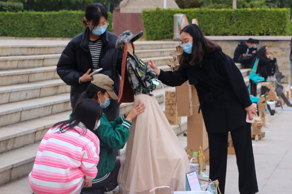 纸盒创造艺术品,环保节约我能行。近日,由bv伟德国际体育团委主办、bv伟德国际体育学生会志愿实践部承办的“纸盒改造”比赛分别在西校礼堂前和东校园林荫道旁举行。