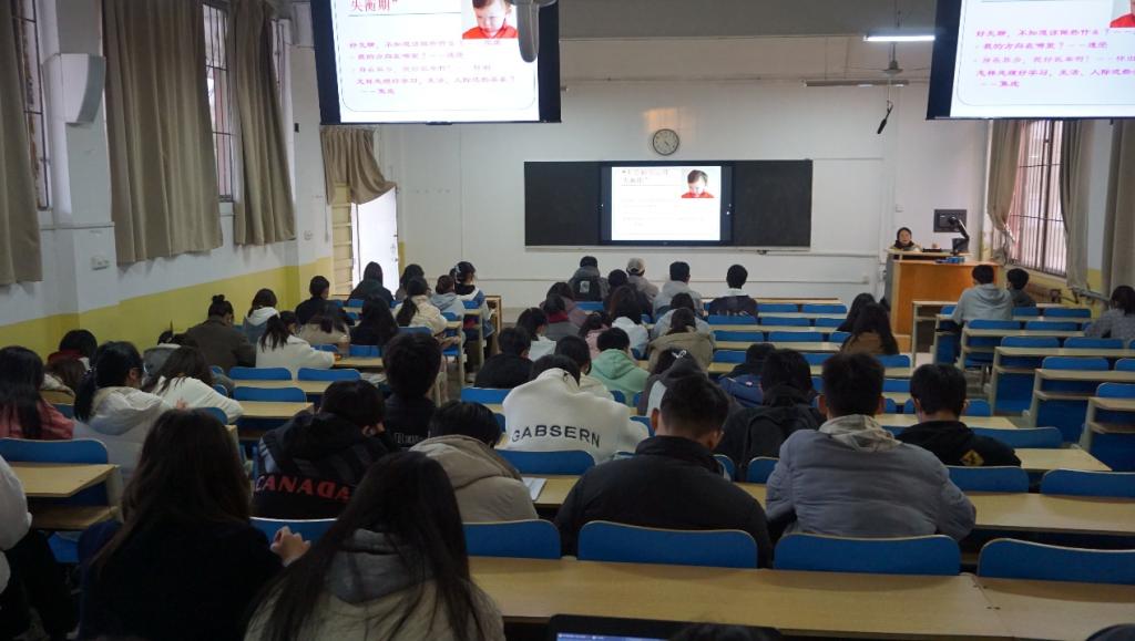 宋大力对大一新生入学以来遇到的心理问题进行了深入解读并给予解决方案。她分析了当前大学生入学以来遇到的各种迷茫和困惑,并指出大学适应的过程是大学生不断进行自我调整的过程。对于如何度过大学新生心理失衡期、进行心理调节给出了建议,告诉同学们以积极的心态接受现实,做有目标、能自律、善交际的大学生,用一个个鲜活的案例向同学们展示了心理健康的重要性。她提出大学生应积极参加学校活动,培养兴趣爱好,勇于面对挫折,战胜困难,才能走出自我认知的误区,培养健康的心理观念。