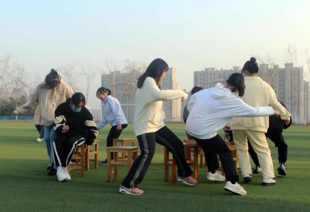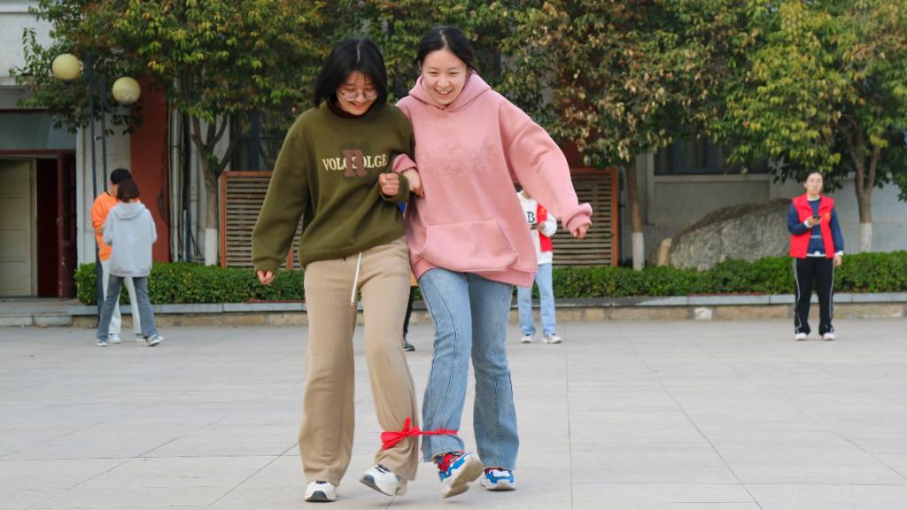 工作人员精心准备了现场。活动共分为三个环节:双人跳绳、两人三足、抢凳子。活动开始,同学们默契配合、积极拼搏,活动现场井然有序,一张张充满活力的面庞如破茧的彩蝶在青春的舞台上绽放,展现出团结与友爱。活动结束,大家合影留念,定格美好瞬间。