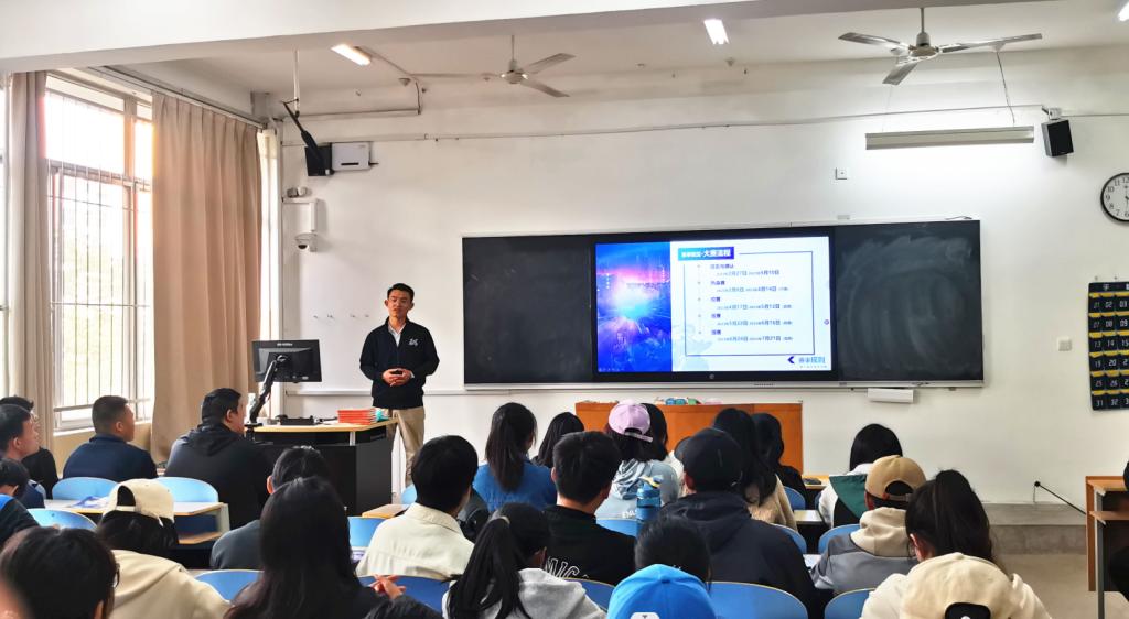 杨生鹏从“赛事背景、赛事流程、参赛方式、参赛技巧、注意事项”五点出发,对第九届“东方财富杯”全国大学生金融挑战赛进行了详细讲解,并结合自身在校期间参赛经历,以“学长”身份设身处地的为学生传授参赛经验,赢得现场阵阵掌声。讲座最后,杨生鹏热情细致的解答了十余名学生疑惑,学生们收获满满。