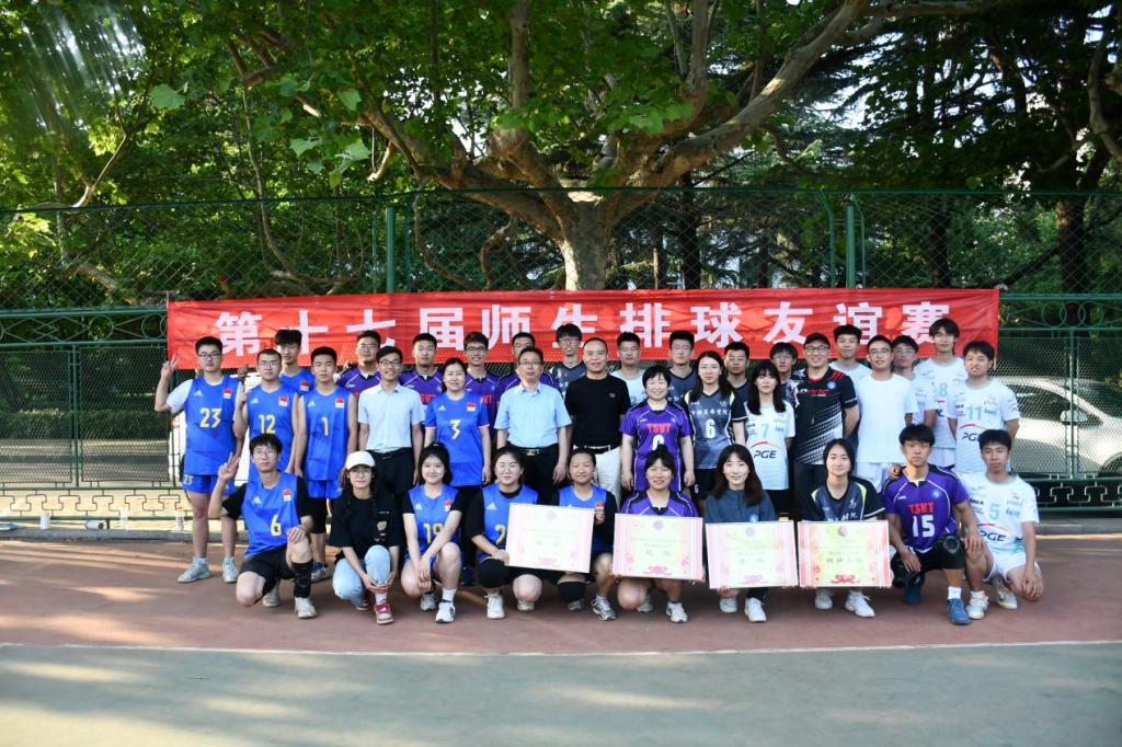 为了进一步加强师生之间的交流,增进师生友谊,丰富校园文化生活,强健体魄,bv伟德国际体育于5月5日至18日在东、西校园排球场举办了第十七届师生排球友谊赛。东西校园总决赛于18日在东校园排球场举行。伟德国际victor官网部副主任牛进社,bv伟德国际体育党委副书记程家国,公共课教学部体育系副主任秦伟,bv伟德国际体育团委高琳观看了总决赛并为获奖团队颁奖。
