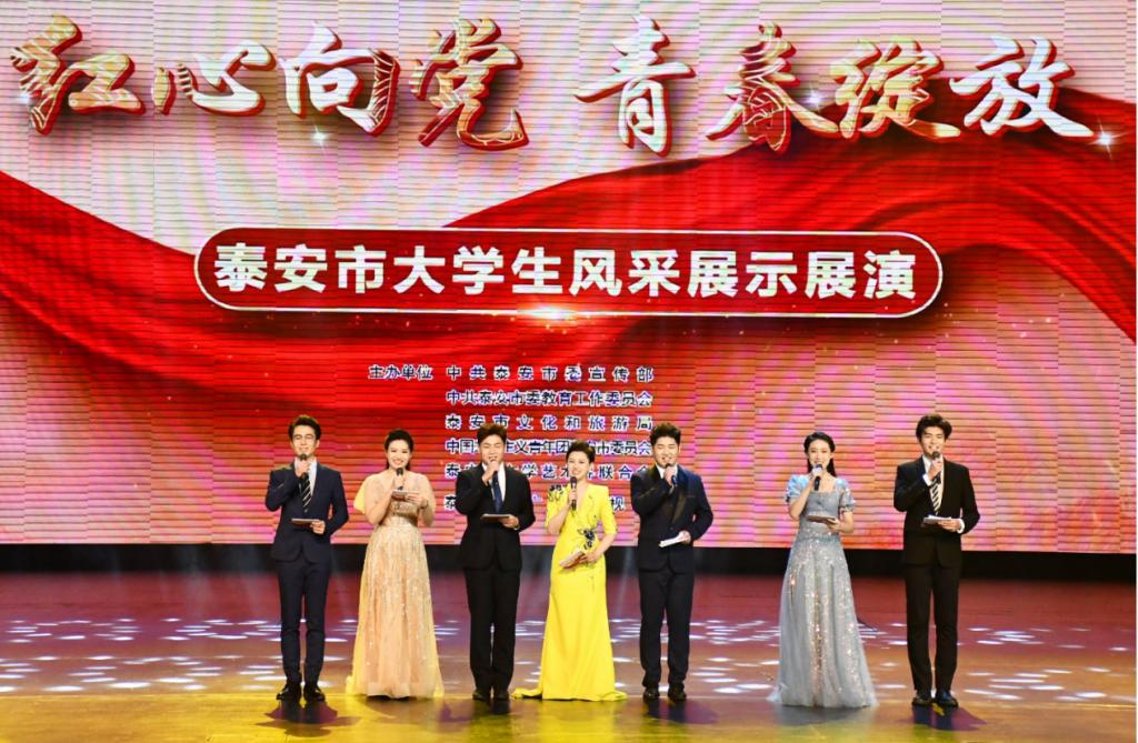 本次活动由泰安市委宣传部、市委教育工委、市文化和旅游局、团市委、市文联主办,市广播电视台承办,14所高校共推报入选19个节目。中共泰安市委常委、宣传部部长、市委教育工委书记王爱新出席并致辞。bv伟德国际体育团委对本次展演高度重视,对活动开展进行全程指导,精益求精对待每一个细节。由于专业限制,演员基础薄弱,bv伟德国际体育团委老师利用周末时间加班加点进行悉心指导和细节打磨,力求取得最好的舞台效果。演员们克服东、西校园合练机会少等种种困难,珍惜每一次排练机会刻苦训练。此次展演活动很好的展示了我校学子的良好精神风貌。