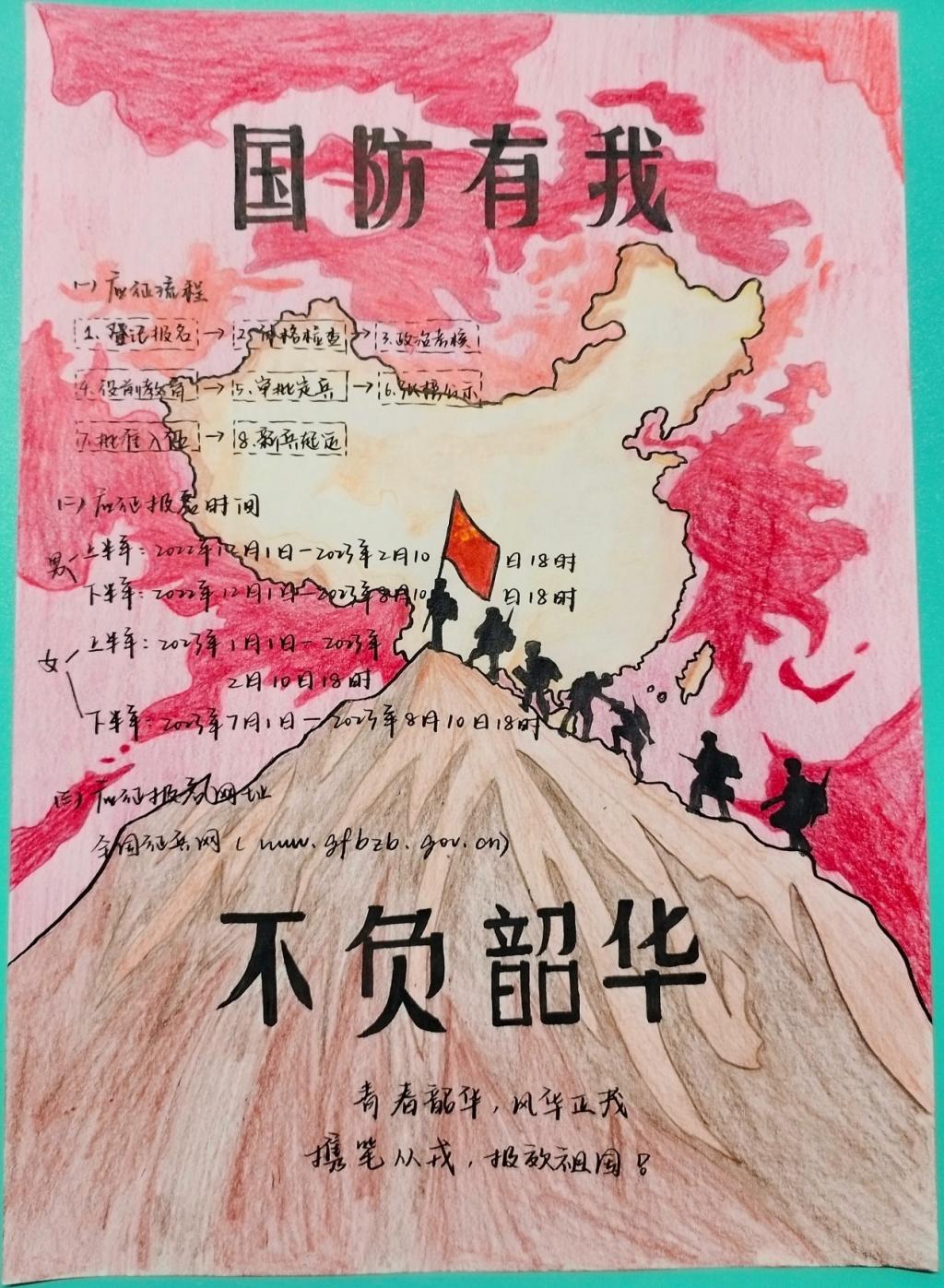 近日,为营造浓厚的参军入伍氛围,动员更多优秀大学生报名参军入伍,bv伟德国际体育大学生国防教育协会举办第一届“国防有我,不负韶华”征兵宣传海报设计比赛。