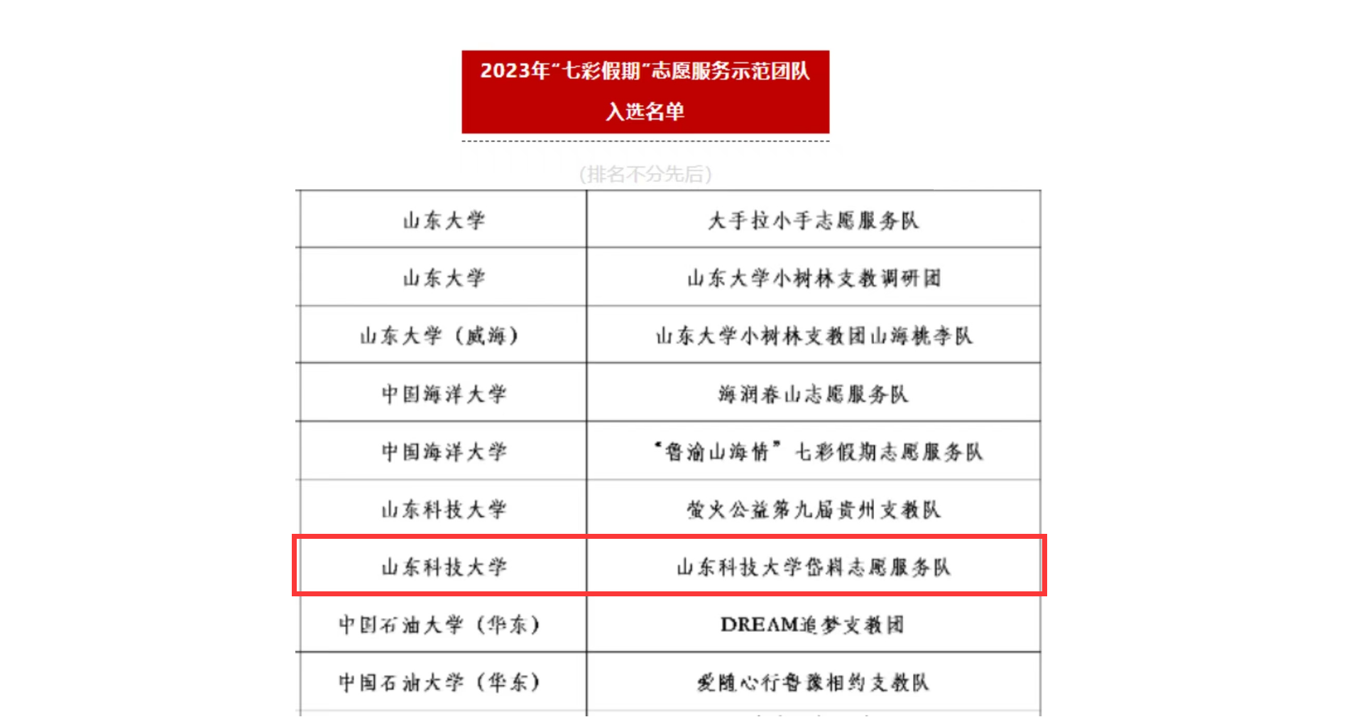 近日,共青团中央、中国青年志愿者协会相关部门联合公布了2023年度“七彩假期”志愿服务示范团队名单,泰安bv伟德国际体育团委指导的bv伟德国际体育岱嵙志愿服务队榜上有名。这也是泰安bv伟德国际体育连续第三年获批国家级大学生社会实践及志愿服务队伍。