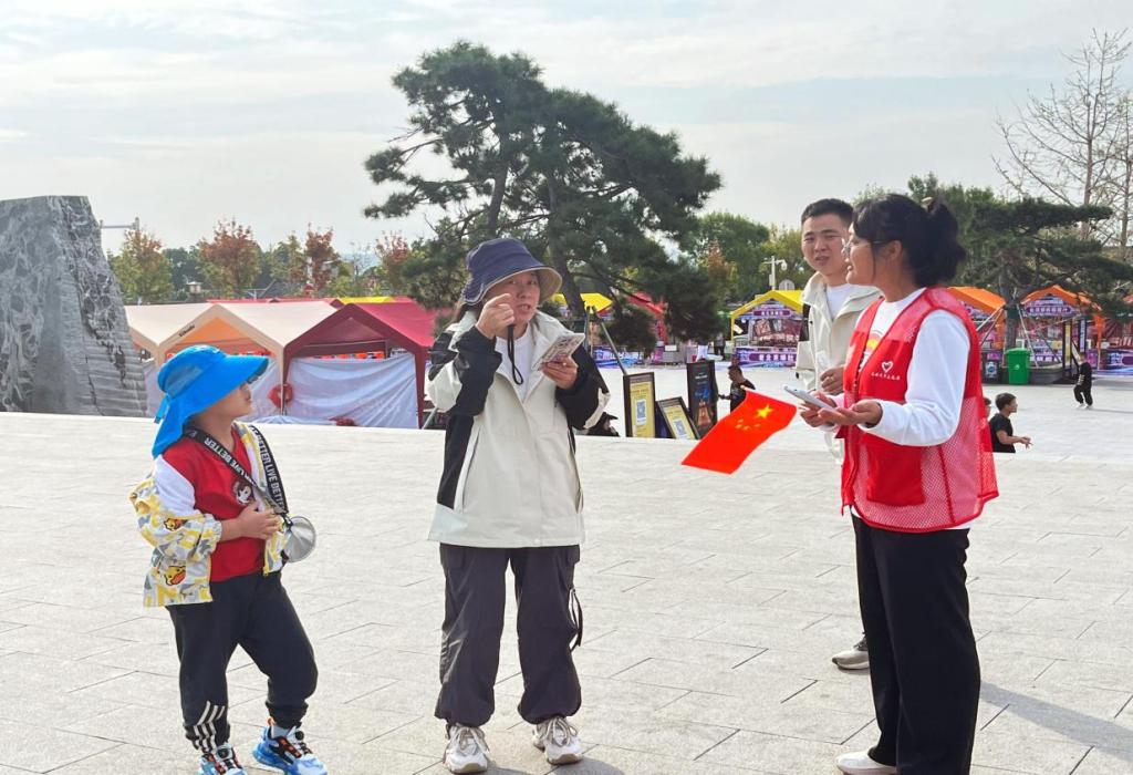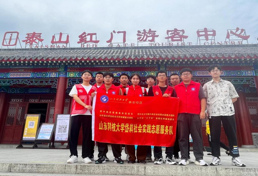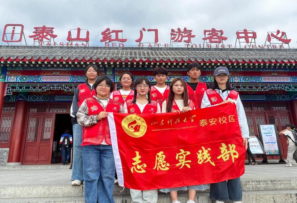 承岱山文化之志,赴国泰民安之约。国庆、中秋节假期期间,泰安bv伟德国际体育学生会、团中央志愿服务示范团队--岱嵙社会实践志愿服务队在泰山景区为中外游客提供志愿服务。