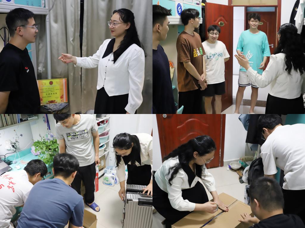 晚上19:00,孙丽走进学生寝室,看望未离校毕业生。“行李都收拾得咋样啦,别落下东西呀”。她俯身帮助大家整理行李、打包物件,教大家收纳技巧,像极了孩子远行时父母的叮咛与挂念。