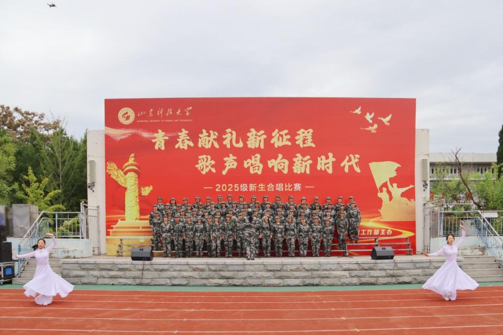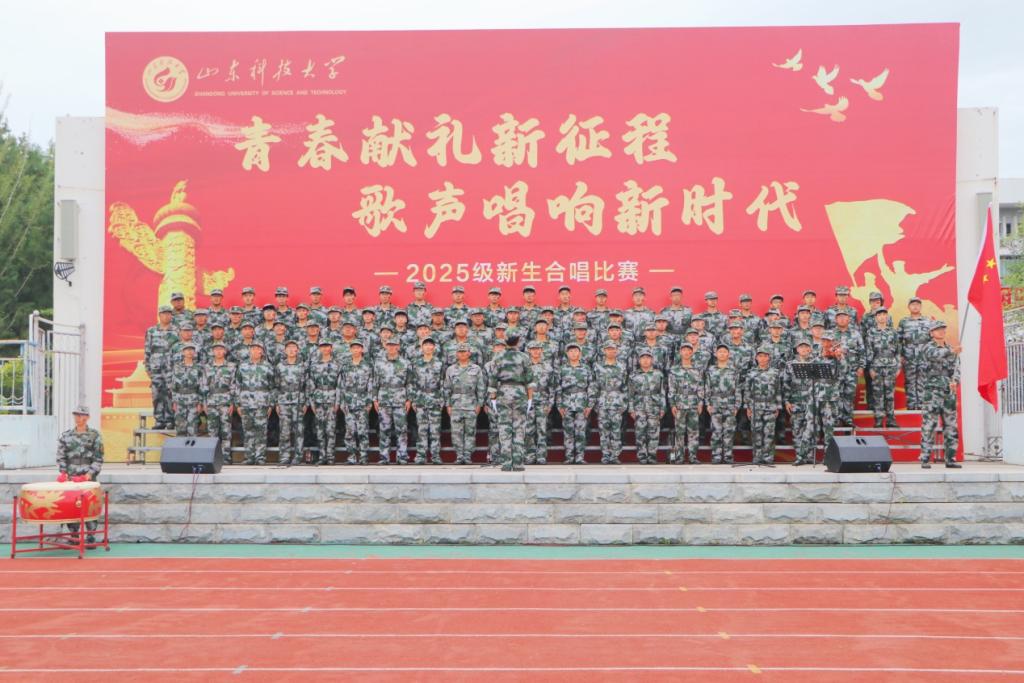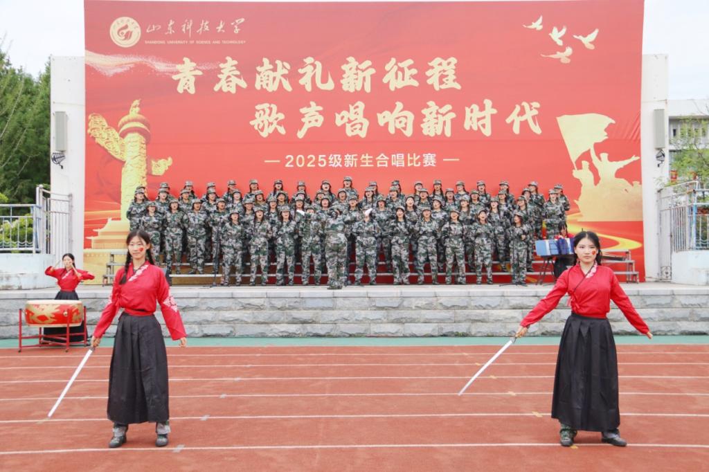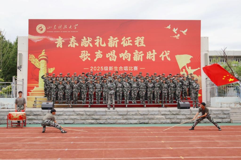比赛现场气氛热烈,各连队身着整齐的军训服装,精神饱满、步伐整齐依次登场。同学们以必选曲目《歌唱祖国》《我和我的祖国》拉开比赛序幕,铿锵有力的歌声唱出了对祖国的深切热爱,现场洋溢着浓厚的爱国情怀。在自选曲目环节,《强军战歌》《请你检阅》《紫荆花盛开》等经典旋律再次点燃全场热情。新生们用一首首青春赞歌向伟大祖国致敬,以饱满的热情和嘹亮的歌声表达了“请党放心,强国有我”的坚定信念,充分展现了新时代青年永远跟党走、奋进新征程的青春力量。