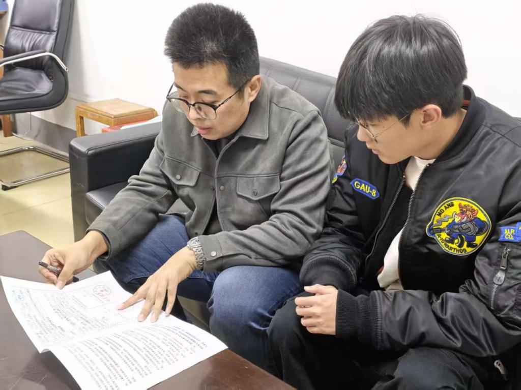 回到办公室后,陆续有学生前来咨询考公事宜。有人想确认岗位是否符合专业要求,有人询问填报流程,还有人担心材料准备不完整。他根据学生的具体情况逐条解释,帮助核对公告、岗位表和相关政策,避免因理解偏差影响报名。同时,他协助学生与企业办理考公协议,逐项核对信息,确保流程规范。