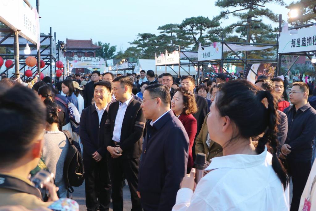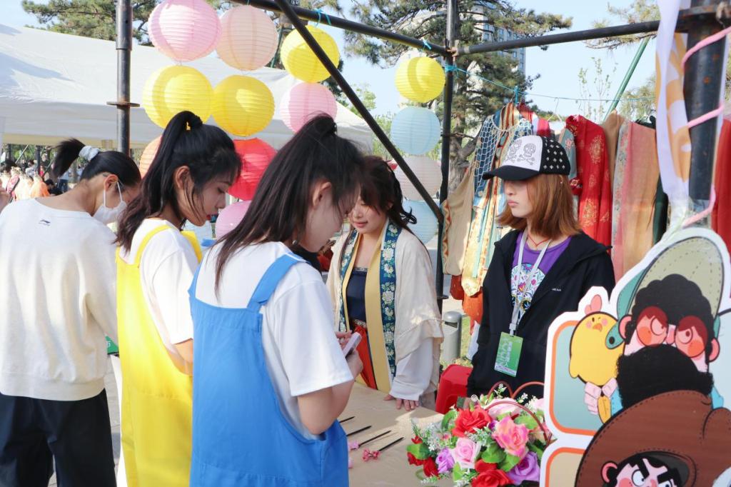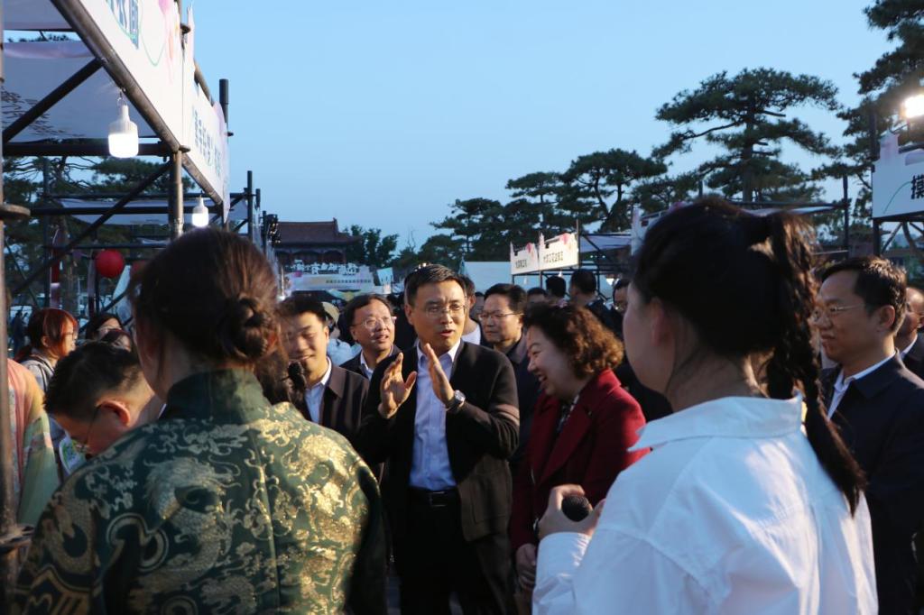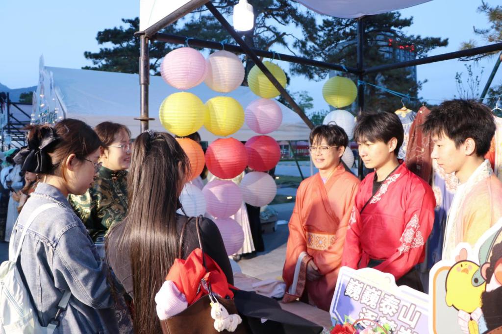 4月25日,“岱庙城墙有个摊儿”青春文化市集省级示范活动暨2026泰安市大学生文化交流季在岱北文化广场盛大启幕。bv伟德国际体育精心打造“月满衣廊”国风文化体验区,以青春创意赋能传统文化,尽显国风魅力。bv伟德国际体育党委副书记殷永贵、校团委副书记高琳应邀出席活动。