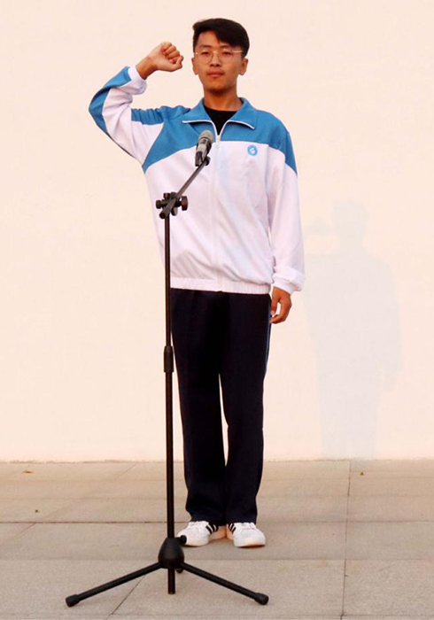 最后,团员代表孙明轩带领同学们重温了入团誓词,同学们举起右手,庄严宣誓。同学们的誓言铿锵有力,掷地有声,在西校园操场久久回荡。(文:孙胜奥 图:孙浩 王晓雨 )