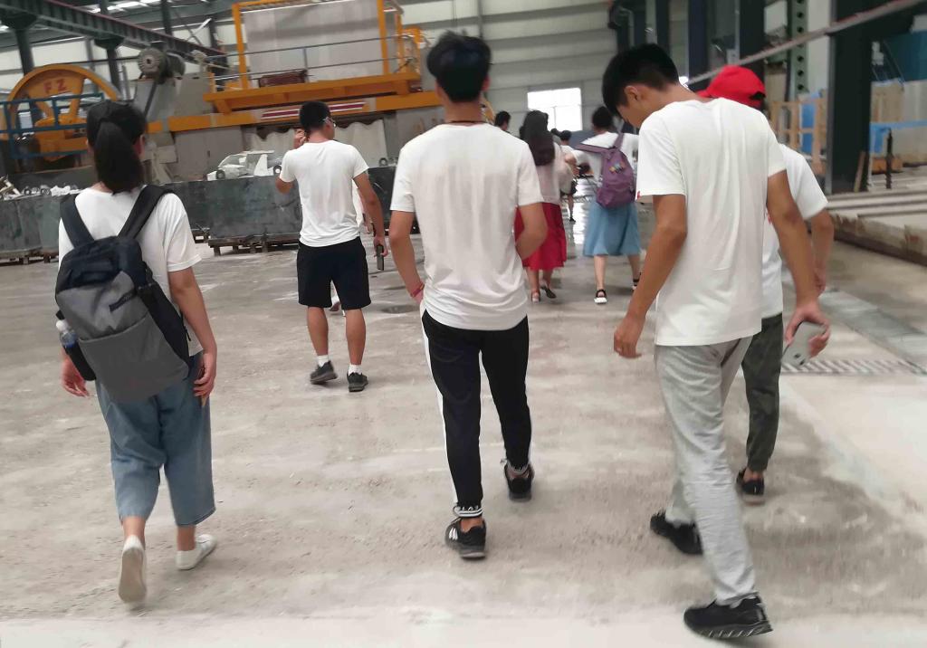 董事长首先介绍了石材城产业的发展布局以及石材产业发展状况,让队员对于平邑县这一特色产业有了初步的认识。随后,又带领队员参观生产车间,通过他们的讲解,刷新了队员们对现代加工工艺的认知,也让队员们更加深入理解了“科学技术是第一生产力”。其中,在石料切割这道工艺上,通过污水沉淀、过滤等多道工艺,完成了零废料排放,这是新旧动能转换的特色事例,给平邑县其它产业的动能转换提供了经验,不仅节约了资源,而且保护了环境,也响应了党中央提出的“绿水青山就是金山银山”的号召,真正做到了把石材产业打造成绿色创新,合作共赢的产业升级样版。(文/图:孙延文)
