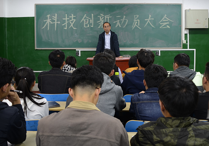 谢清勇就如何正确认识大学生科技创新活动与同学们进行了交流,他主要从大学生科技创新的意义、科技创新对社会发展的作用以及对个人能力提高的重要性进行了分析。他结合机电系优秀校友的典型事例让同学们进一步认识到了科技创新的重要性。他还就如何提高科技创新能力和水平与同学们进行了探讨,他希望大家做好科技创新一定要培养自己的兴趣,找好落脚点,做好规划,各班级、团支部要积极为广大科技创新爱好者提供良好的环境,组建好科技创新兴趣小组,引导广大同学利用课余时间加强学习,提高个人动手能力。各班班干部要带动广大同学利用学校和系里提供的各种平台积极参加各类项目申报和科技创新大赛,注重个人专业知识和参赛经验的积累,不断提高参赛质量和创新水平。
