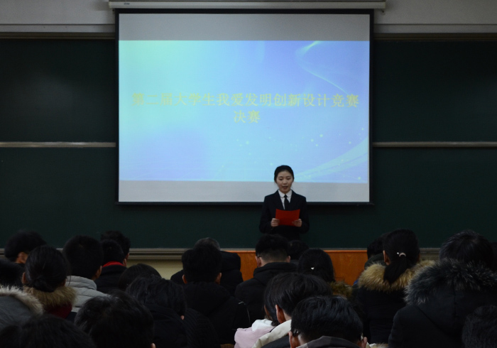 3月14日,机电工程系大学生科技联合会在5#201举办第二届大学生我爱发明创新设计大赛决赛。系团总支书记谢清勇,自动化专业武超、高学辉、祝长生老师,大学生科技联合会主席曹堰安担任评委,文艺部干事李文秀主持。