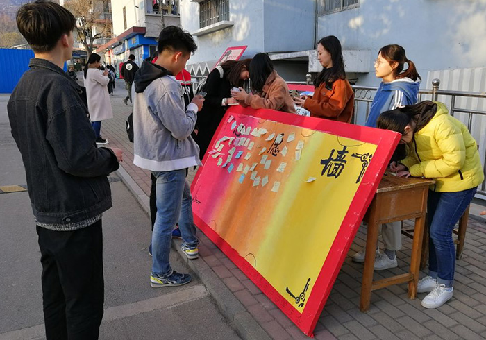 3月11日下午,机电系文明礼仪部在林荫道举办为期四天的女生节心愿墙活动。