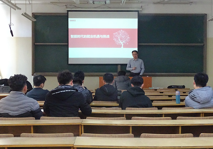 李鹏就同学们提出的考研与不考研的区别、创业前要做的规划、物联网对生活的改变、企业对应聘者的关注点、参加科技比赛的意义等问题分别进行解答。李鹏从工作环境、待遇、地位三方面分别分析了行政服务类、技术研发类、业务销售类三种工作类型的前景。随后,李鹏介绍了公司的基本情况,对公司的业务涵盖情况、薪酬问题和福利待遇做了宣讲。最后,公司招聘人员对有意向的同学进行了面试。