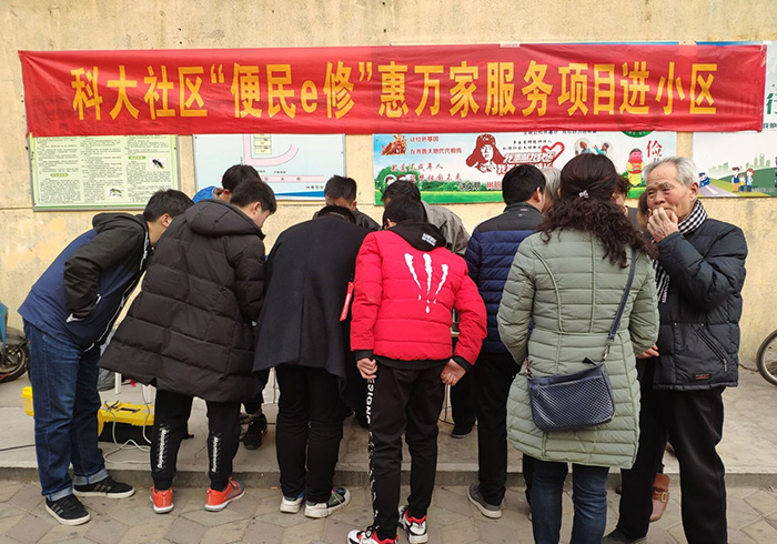 3月5日下午,机电系电子爱好者协会指导老师谢清勇在科大社区组织协会成员举办“便民e修”惠万家服务活动,借学雷锋纪念日之机,走进科大社区义务维修电器。