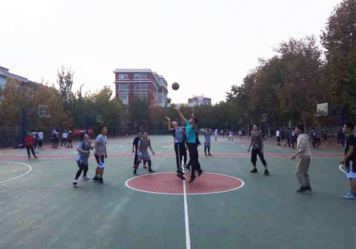 12月10日,机电系2018级电气工程及其自动化(专本)专业与机械电子工程专业16-1在篮球场组织篮球友谊赛。