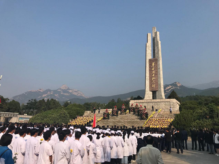 2019年9月30日迎来国家第六个“烈士纪念日”。为纪念为祖国牺牲的烈士,泰安市党政军领导同社会各界代表一起,在泰安革命烈士陵园举行烈士公祭活动。经济管理系125名学生作为学校学生代表参加此次公祭活动。