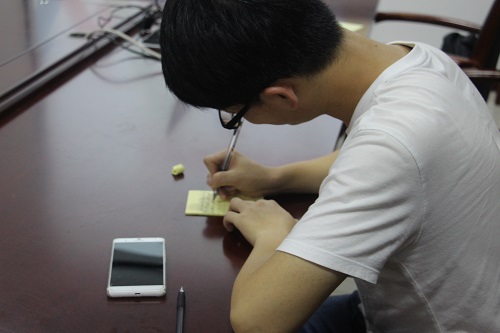 班会最后,张娜老师说,画笔在每个人手中,希望大家用剩下三年的大学时间,将大学生活填补空白,绘制出自己想要的绚烂图画;并发给每位同学一张便签,让每位同学写下“毕业后希望成为怎样的人”。同学们认真写下后,交由张娜老师保管。(文|图:战军歌)