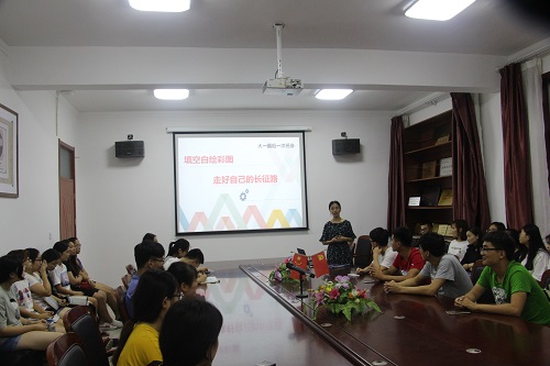 会议伊始,张娜首先总结了班级入学一年来的总体情况,肯定了同学们的成长与进步,指出存在的问题及不足;同时请同学们思考三个问题:“你想象的大学生活是什么样子?你的大学生活是怎样的?你在大学里读到了什么?”