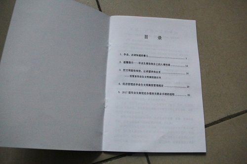 为更好的服务毕业生工作,结合以往毕业生在毕业时常出现的问题,经管系总结印制了毕业生手册。该手册涵盖文明离校管理规定、毕业必须知道的事儿和毕业后办理有关就业手续的说明等多项内容。工作人员认真组织发放工作,确保将手册发放到每位学生手中。许多毕业生表示:“系里考虑十分周到,我们将努力工作,贡献社会,以此来回馈母校的哺育之恩。”
