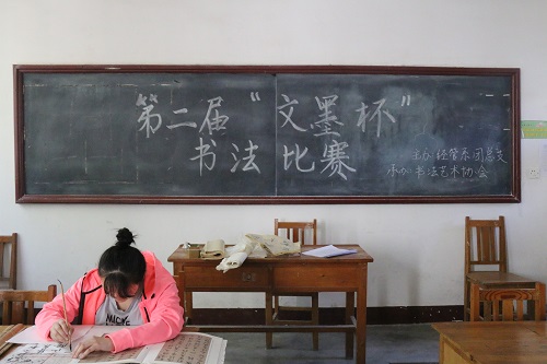5月2日下午,由经管系团总支主办,书法艺术协会承办的第二届“文墨杯”书法比赛在5202教室正式举行。