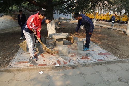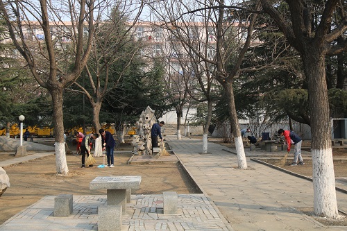 为营造美丽校园,提高同学们环保意识,3月18日,经管系同心社社长于睿哲,副社长王少华带领十余名干事来到雷峰园,进行校园美化活动。