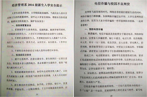 为了使2016级新生尽快融入大学生活,经管系团总支专门印制《经济管理系2016级新生入学手册》供新生学习,内容包含致新生和家长的一封信、安全提示、防范电信诈骗与校园网贷、日常管理制度等九个板块。(文:周广文 图:刘安宁)