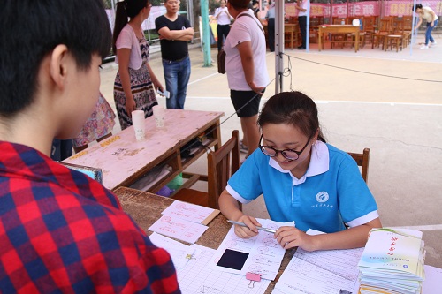 新生报到现场,兼职辅导员发放《入学手册》
