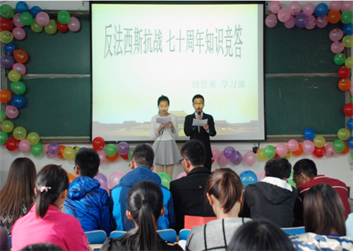 10月30日,经管系学生会学习部于1c103举办“纪念世界反法西斯战争胜利70周年”知识竞赛。