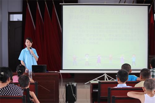 7月28日上午,东孔村暑期“三下乡”综合实践团进行了社会主义核心价值观之“爱国”讲座,讲座由综合实践团成员李博雅、梅东主讲。