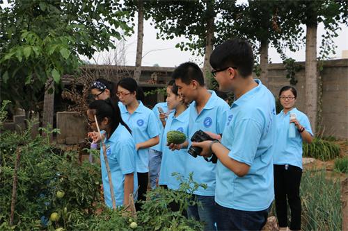 红彤彤的西红柿、摇摇欲坠的茄子、香喷喷的甜瓜、硕果累累的玉米……一下田地,大家便被眼前琳琅满目的农作物吸引,不一会儿,便投入到不亦乐乎的劳作当中,拔草、亲自采摘果实……平时看似简单的农活却让大家深深地体验到农民生活的辛苦。然后,大家又去参观了当地有名的“绿豆粉皮”的制作工具与过程,增强对当地“粉皮文化”的了解,也为以后的社会调研项目的开展打下坚实基础。