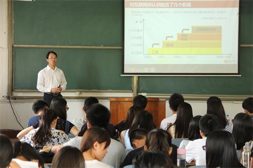 为增强经管学子适应社会的能力以及对未来就业的认识,7月8日,经管系特邀山东省摩瑞商贸有限公司董事长邓雄在4210教室为经管学子作题为“互联网+金融突围”专题报告。