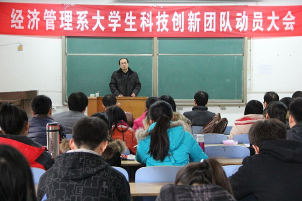 此次活动本着“营造科技氛围,提升科研水平,培养创新人才”的原则,旨在引导广大经管学子在学好基础知识的同时,培养创新意识,塑造创新人才。首先,经管系教学科研办公室主任于明奎宣读了《经管系大学生科技创新团队实施办法(试行)》,并对大学生科技创新团队申报的相关流程做了详细的介绍。随后,经济管理系副主任吴言忠发表讲话。他对经管系在科技创新方面取得的成绩给予充分肯定,他指出三叶草等优秀科研团队的组建,申报专业由点到面的扩展,科研成果的增加,无不显示着经管学子创新意识的增强。最后,他鼓舞经管学子们积极投入到科技创新活动中,为经管系再创辉煌。