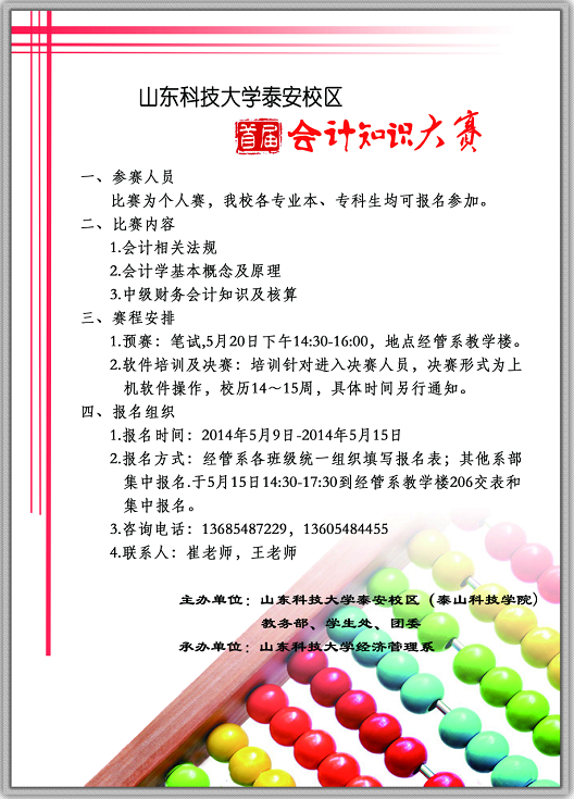 经管系以班级为单位统一组织报名,填写报名表,报名表请于5月15日下午14:30-17:30集中交到经管系教学楼206会计教研室。