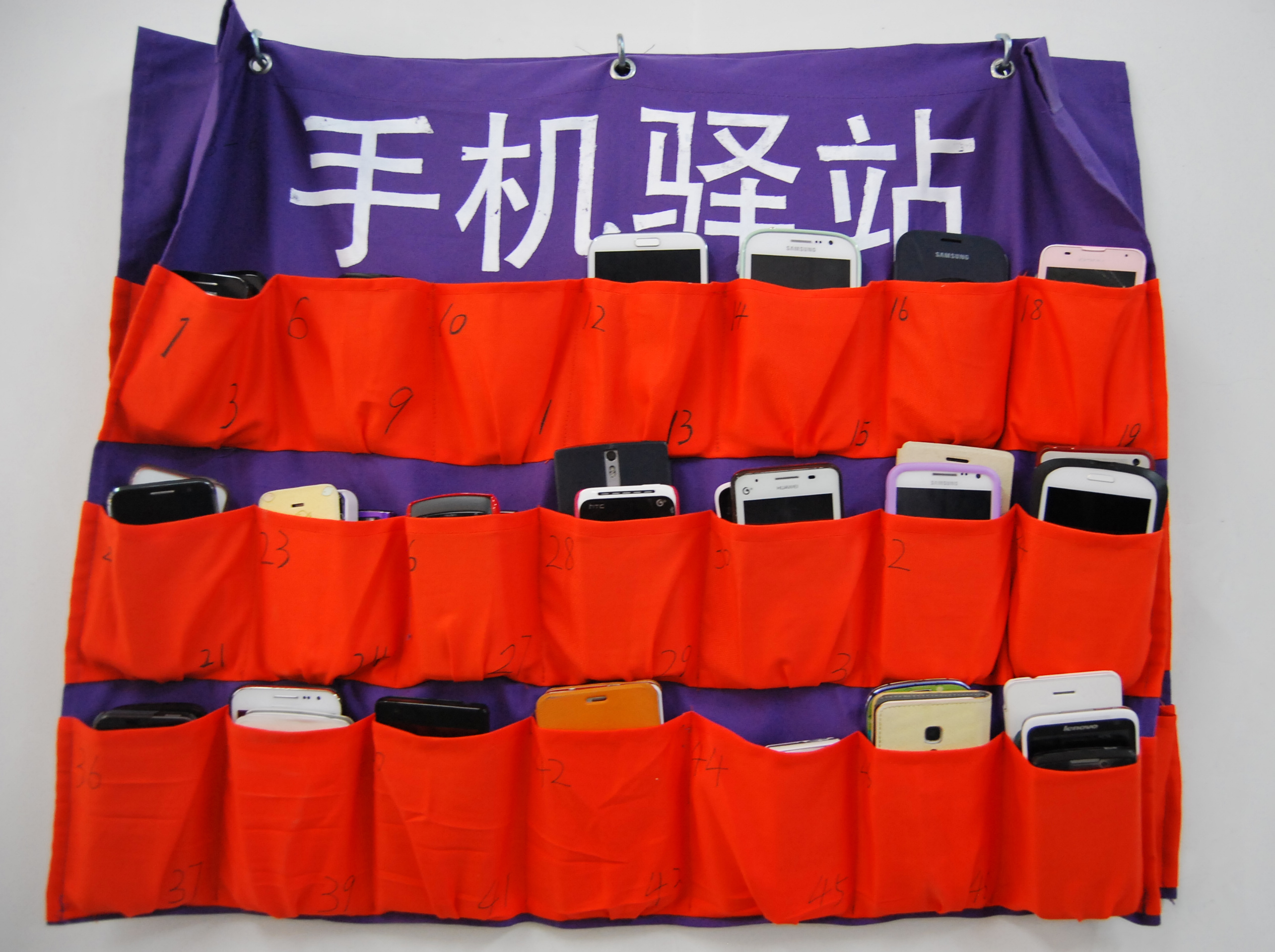 现在,经管学子们正在越来越认可一项新的课堂纪律,即上课的时候手机不能在自己身上携带着,要放在手机收纳袋里。上课铃声响前,班级里两名“管理员”就将同学们的手机集中收集,放在手机收纳袋。看着收上去的各式各样的手机,望着“手机管理员”忙碌的动作,其他同学开始了课前的最后准备。