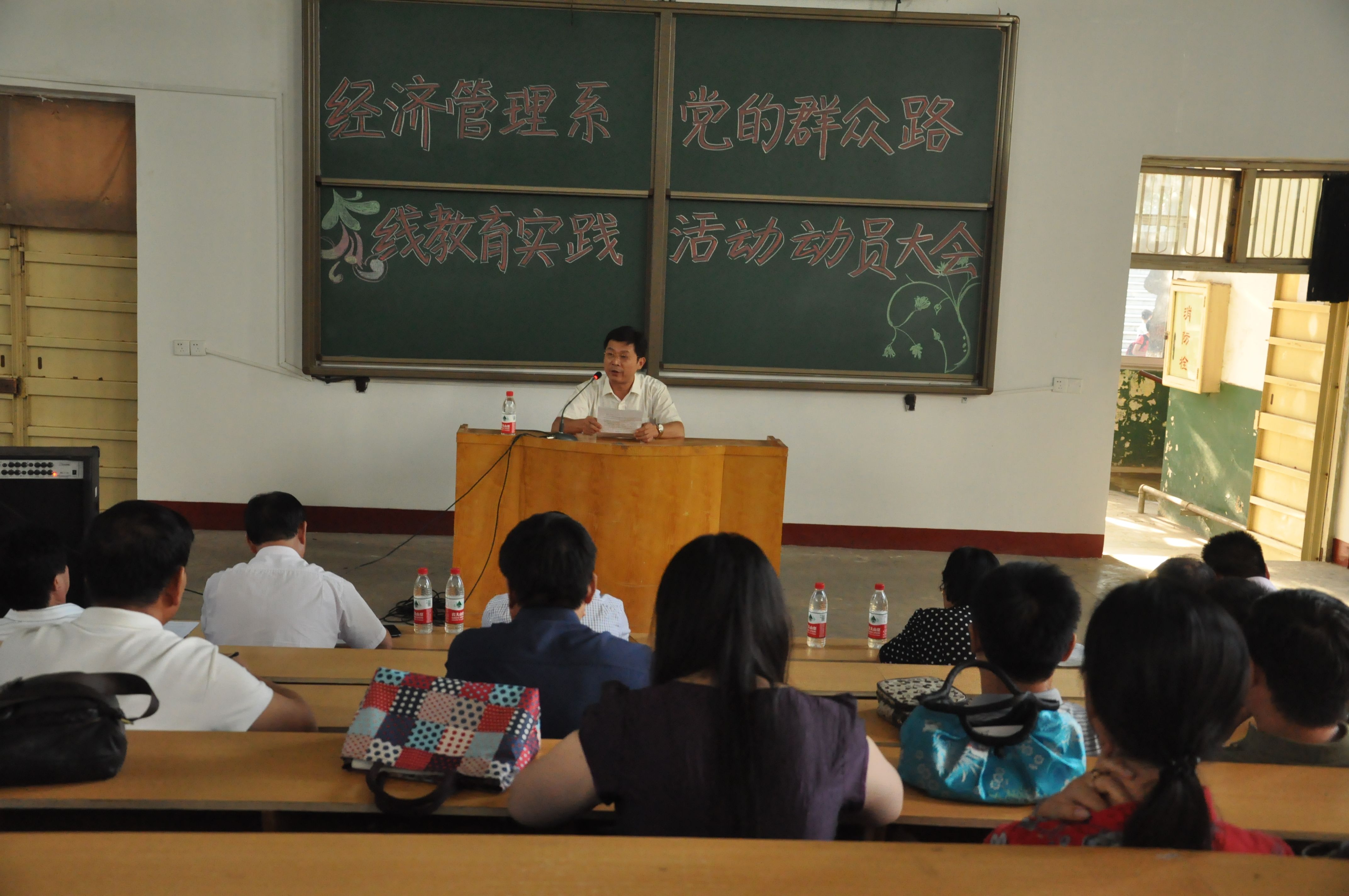 经管系党总支书记韦安永做了动员报告。他首先明确了本次大会的主要任务,即:认真贯彻落实中央、省委、学校党委关于党的群众落线教育实践活动的部署。结合bv伟德国际体育(学院)部署和经济管理系实际,他提出以下三点意见。第一,深刻领会开展党的群众路线教育实践活动的重大意义,切实把思想统一到中央的决策部署上来。他指出:开展党的群众路线教育实践活动是实现十八大奋斗目标的必然要求,是推动经管系改革发展的强大动力。因此,应该积极贯彻中央部署,在班子决策、制度建设等方面真正贯彻好群众路线,从战略高度出发,充分认识开展此次活动的重要意义,以饱满的热情积极参与到活动中来。第二,紧扣目标要求,结合学校实际,积极稳妥地把党的群众路线教育实践活动推向深入。在活动中坚持正面教育,批评和自我批评,坚持讲求实效,坚持分类指导,坚持领导带头。第三,加强组织领导,确保党的群众路线教育实践活动取得明显成效,确保党支部在时间紧、任务重、要求高的前提下把教育实践活动作为工作的重中之重,确实抓紧、抓实、抓出成效。