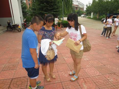 根据经管系暑期社会实践活动实施方案,实践团首先来到粥店社区综合文化站活动中心对社区中小学生开展义务教育帮扶活动。团队成员陈新宇、孙德娟分别作了“青春梦·大学梦”的励志主题演讲,以中小学生喜闻乐见的方式,引导他们珍爱青春、奋斗青春,树立正确的世界观、人生观、价值观。石丽、孟庆飞、孙晓宇、张媛媛同学分别针对中小学生关注度较高的语数外学习方法问题作了专题辅导报告,随后团队成员与中小学生进行了分组一对一、面对面辅导,对大家提出的问题给予耐心细致解答。随后,在社区工作人员的带领下,实践团参观了粥店社区的幼儿园、文化站、图书馆等基础设施建设,感受了现代城市社区的魅力。临近中午,实践团又到社区的繁华路段发放了提前印制的“我的中国梦”理论宣讲材料,使我的中国梦理论宣讲进基层、进社区。粥店社区王书记对实践团的敬业精神表示钦佩,对团队成员的辛勤劳动表示诚挚的谢意,并表达了期待进一步合作的意愿。
