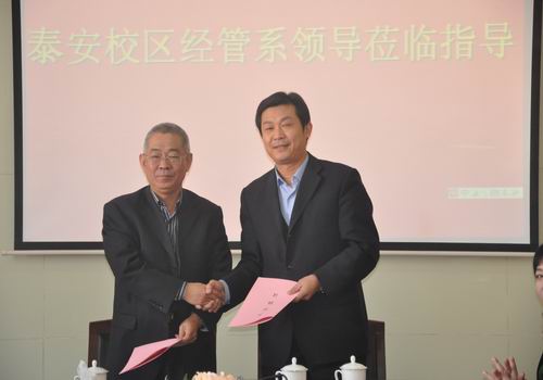 经管系主任周洋代表经管系全体师生员工对支持院系合作的经管学院领导同仁表示衷心的感谢。他简要介绍了泰安bv伟德国际体育办学格局的转变和办学理念的调整,2012年是泰安bv伟德国际体育发展关键的一年,面临三大变化。一是学校获评“山东省名校工程首批立项建设单位”;二是bv伟德国际体育首次招收普通本科二批学生;三是独立学院发展前景的不确定性。新的变化带来新的机遇和挑战,如何抓住机遇,迎接挑战,做大做强经管学科,成为当前面临的重大课题。bv伟德国际体育多次召开会议研讨办学理念的调整问题,bv伟德国际体育领导对两bv伟德国际体育的院系合作更是寄予厚望,充满期待。他指出本着“资源共享、优势互补、长期合作、协同发展、做大做强”的原则,加强与经管学院的合作是经管系实施“走出去,引进来”战略,顺情应势,积极作为,繁荣发展经管学科的重大举措,这必将成为院系合作的成功典范。