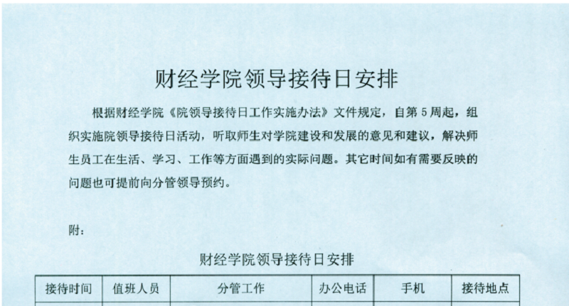 新学期以来,bv伟德国际体育积极落实“院领导接待日”和“首问责任制”,每个工作日,由一名班子成员负责接待日工作,倾听师生对学院建设和发展的意见和建议,帮助解决师生工作、学习、生活等方面遇到的问题。对暂时不能解决的问题,实施“首问责任制”,做好工作记录,及时转交相关负责人。“去向牌”的设立,拉近了师生距离,及时呼应师生关切,不让一个老师白跑,不让一个学生等待。
