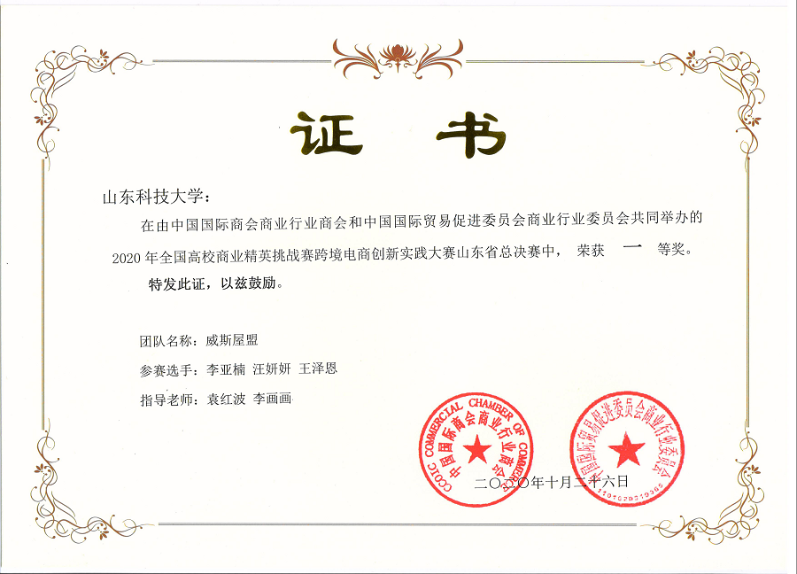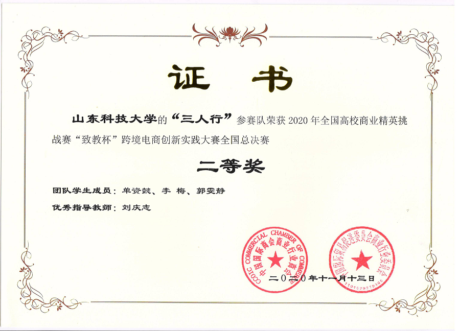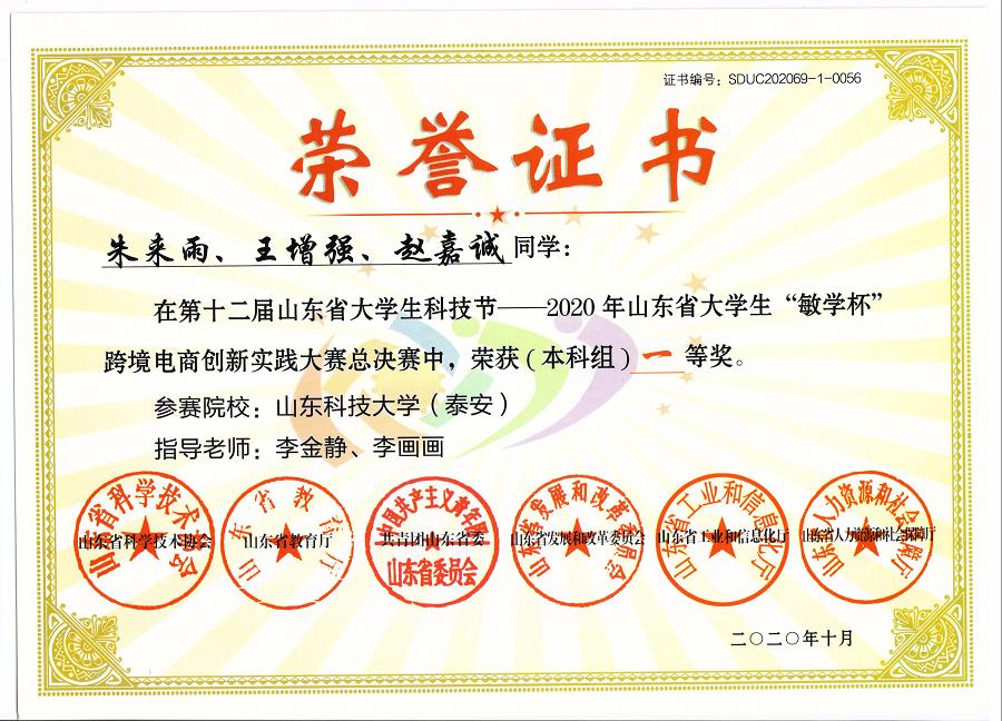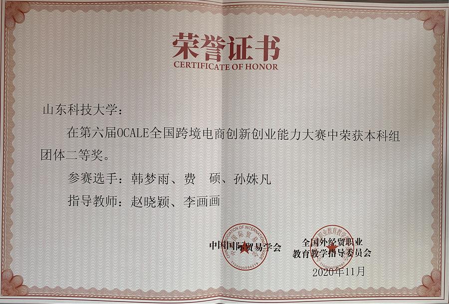 赛前,学院领导高度重视,对竞赛各项工作统筹安排、持续跟进。自9月份以来,教师指导团队积极开展参赛选手的前期选拔和培训指导工作。经过3个月的努力,参赛选手赛出水平、赛出风采,在第十二届山东省大学生科技节“敏学杯”跨境电商创新实践大赛山东省总决赛中,荣获一等奖5项,二等奖11项,三等奖5项,获得一等奖的同学入围全国总决赛,并获得二等奖1项,三等奖4项;第六届OCALE全国跨境电商创新创业能力大赛中,荣获二等奖3项,三等奖6项;在第二届全国新零售创新创业大赛中,荣获二等奖1项,三等奖9项。比赛锻炼了学生的专业技能,展现了参赛选手积极向上、努力奋斗的拼搏精神与开放合作的团队意识,也体现了我院在应用型人才培养上进行实践教学改革所取得的重要成绩。