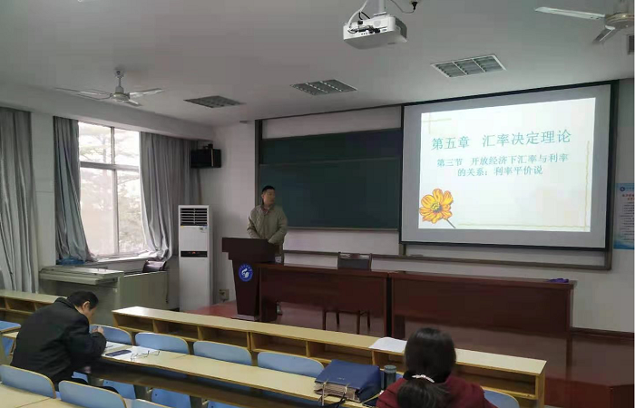 根据抽签顺序,两位教师分别以“利率平价说”和“关税措施”为题,进行教学展示、教学创新设计两个环节的展示。