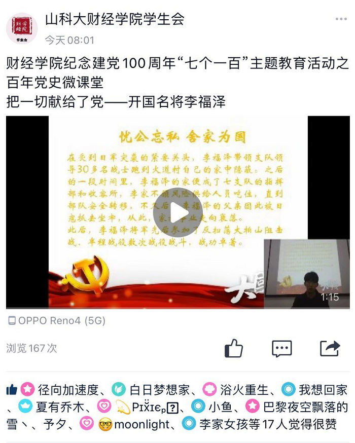 据悉,此项“百年党史微课堂”活动由学院党委主办,学院各教工和学生党支部承办。活动自4月1日启动以来,全体教工党员、学生党员积极参与,紧紧围绕建党100周年和党史教育,通过深入挖掘学校驻地、家乡红色资源等,用心拟定题目、精心撰写讲稿、细心制作课件,统一在4#205进行了前期录制。现已通过bv伟德国际体育学生会QQ公众号宣传推送50余篇,营造了良好的党史学习氛围。(bv伟德国际体育供稿)