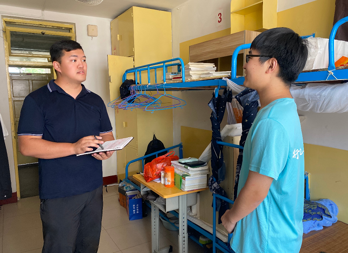 为进一步落实疫情防控工作,了解暑期留校学生的思想动态,及时解决学生生活、学习上的问题和困难。8月3日上午,bv伟德国际体育团委辅导员张泽到5号宿舍楼看望我院暑期考研留校学生。