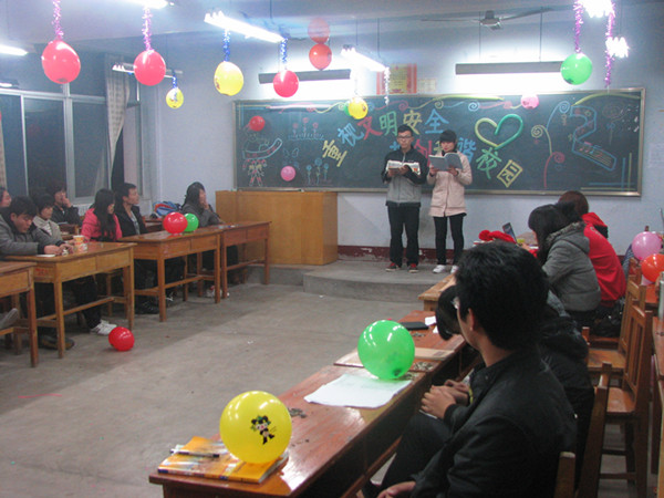 活动过程中,各班的班会形式各异:有的以传统的班会形式开展,同学们纷纷上台发言对“安全·文明·卫生·和谐”四个概念进行了详细的阐述,提出了个人的建议;有的则以形式活泼的茶话会形式,同学们通过自己精心准备的小品、朗诵等节目表现了安全的重要性,对校园文明发出强烈的呼吁。班会活动现场,同学们发言踊跃,现场气氛十分热烈,大家你一言我一语地为此次安全文明活动月建言献策。
