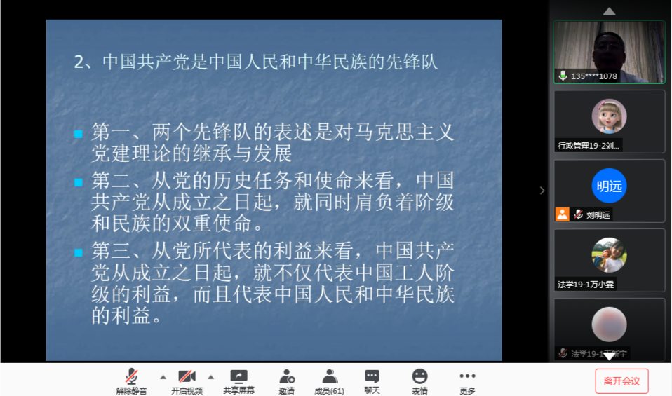 6月21日至29日,公共课教学部通过腾讯会议APP开展第32期入党积极分子线上党课培训班。公共课教学部党委书记陈炳志、原文法系党总支书记马福泉应邀为本期60名入党积极分子讲党课。党课培训班开班仪式由学生党支部书记刘明远主持。