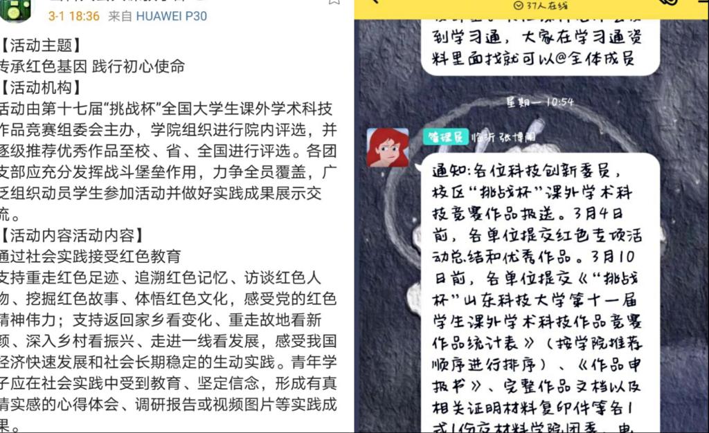 (左图为公共课教学部在QQ、微博平台积极宣传红色专项活动;